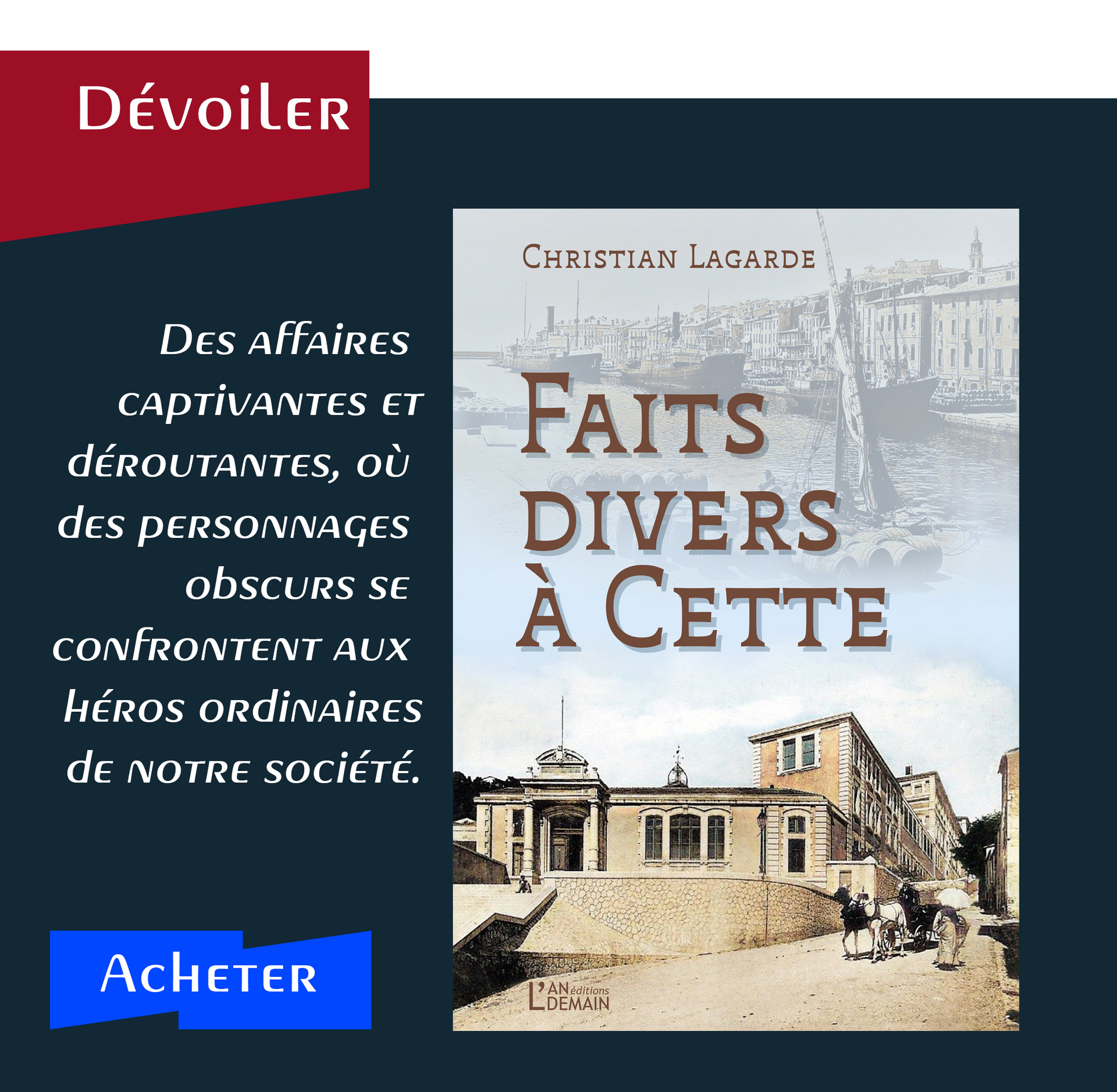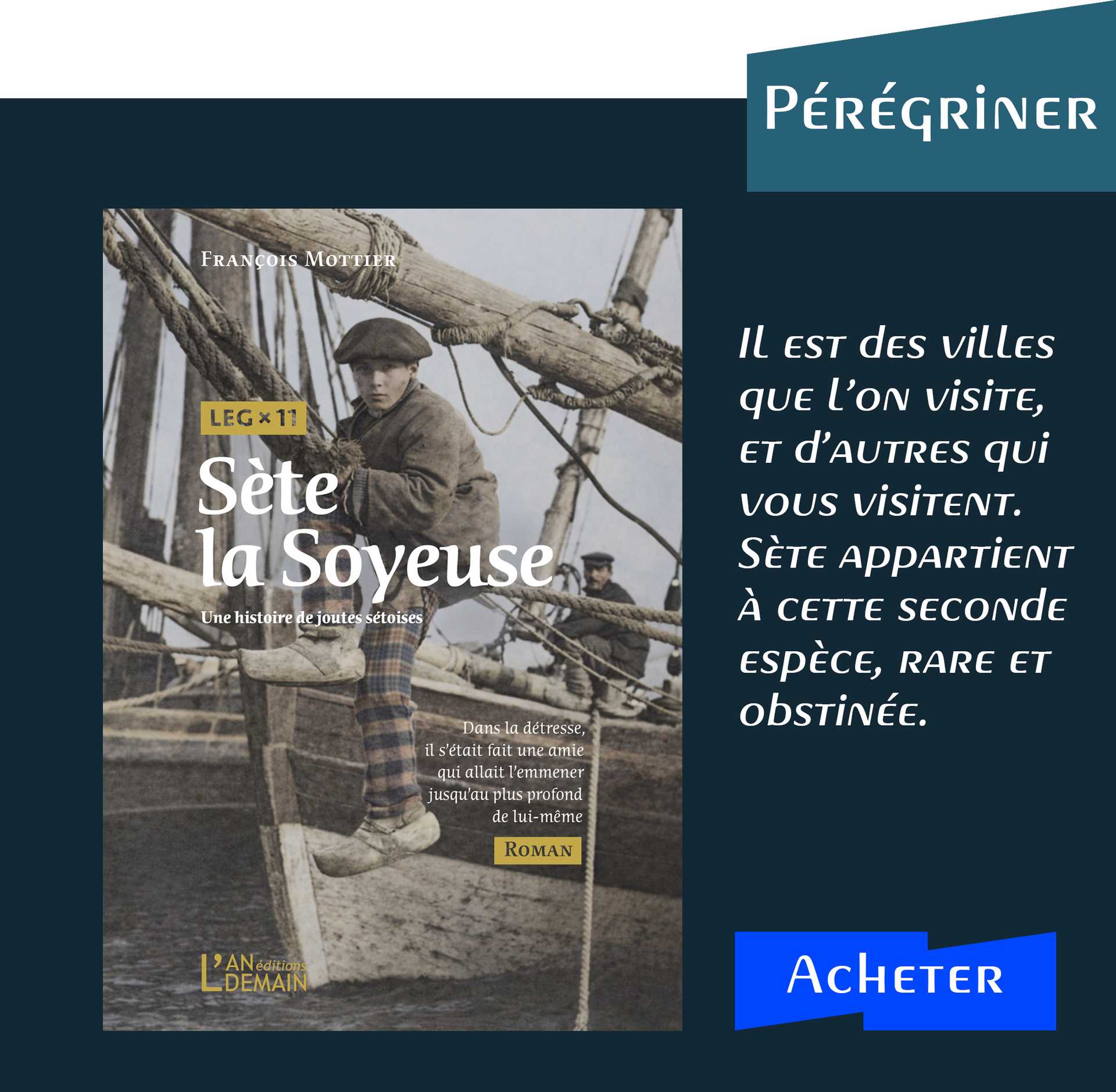 Un style vivant et imagé et une construction riche et rigoureuse du récit embarquent le lecteur dans une aventure humaine passionnante, partageant les doutes des pionniers, participant au développement des activités, à leurs réussites, leurs échecs, accueillant les vagues successives d’immigrants. Deuxième édition remaniée de l’ouvrage Sète 1666, imaginer un port, faire naître une ville, Éd. Foxtrot, paru en 2016 à l’occasion des 350 ans de la création du port de Sète.