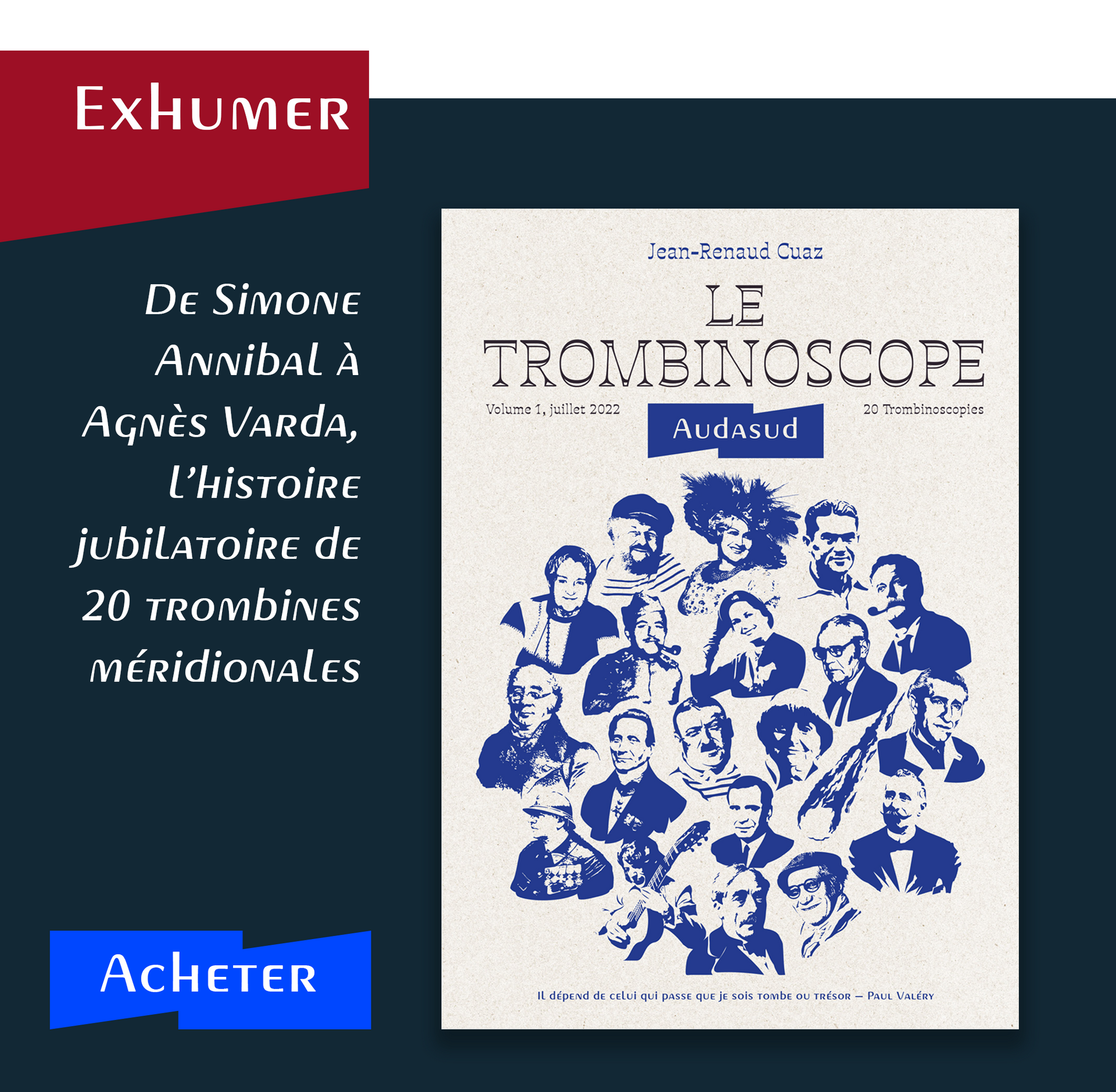 Le Trombinoscope Audasud se veut le prolongement naturel de portraits jubilatoires publiés dans le Blog d’audasud.fr. Dans cette galerie de vignettes plus ou moins élimées se mêlent jovialement le vraisemblable et le fallacieux, l’irréfutable et le chimérique, le réel familier et l’imaginaire absurde.