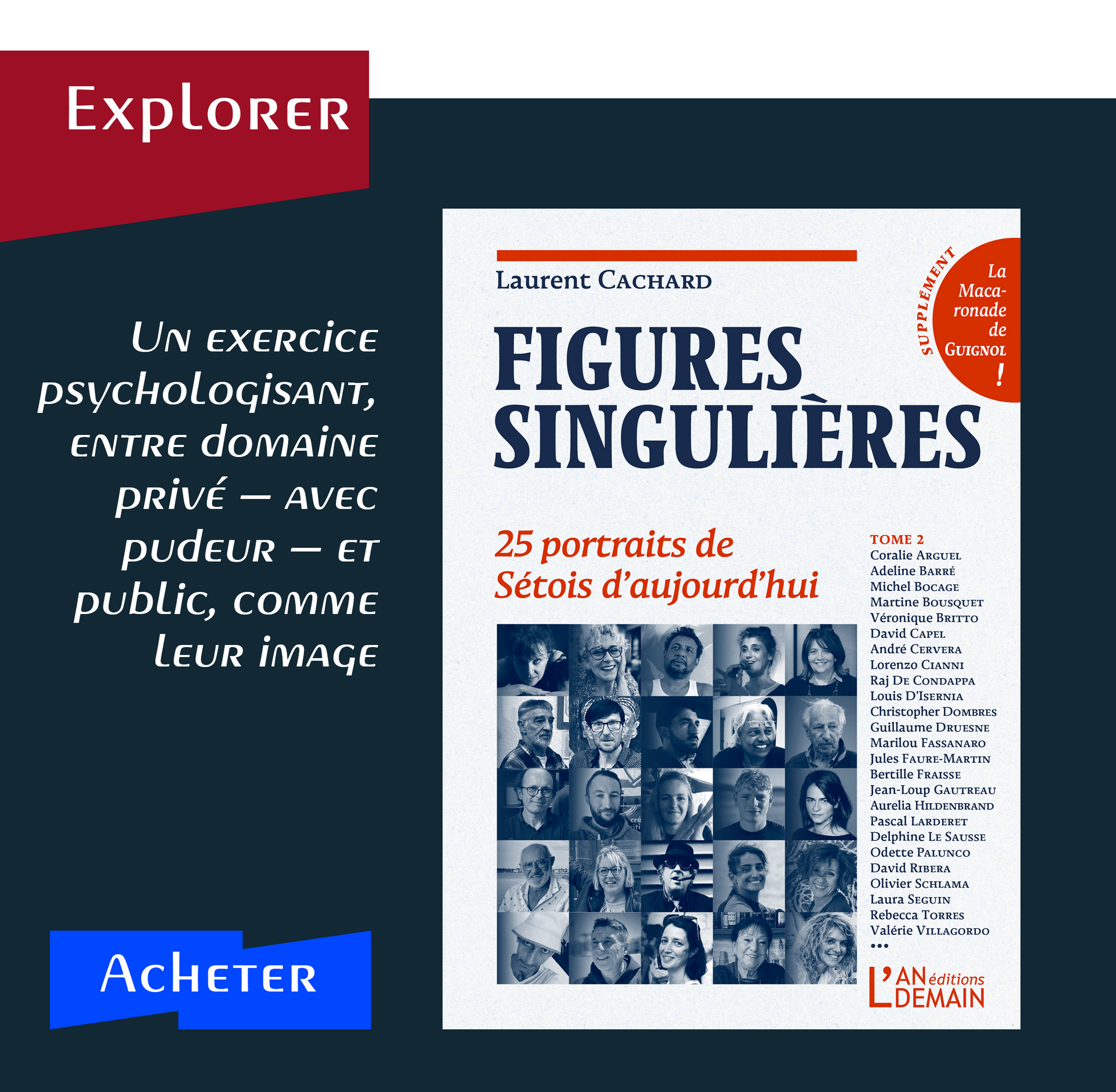 Figures Singulières, après la belle réception des deux premiers tomes. Toujours la même démarche, des portraits réalisés après entretien, publiés avec l’accord du ou de la portraiturée. Une histoire de la ville de Sète recomposée par ceux qui la font, des gens connus, d’autres moins, celle d’une rencontre avec des personnes déjà aperçues, ou pas.