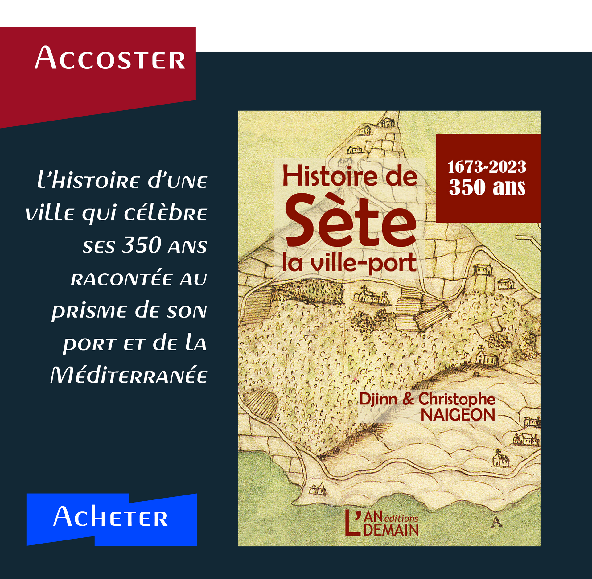 Un style vivant et imagé et une construction riche et rigoureuse du récit embarquent le lecteur dans une aventure humaine passionnante, partageant les doutes des pionniers, participant au développement des activités, à leurs réussites, leurs échecs, accueillant les vagues successives d’immigrants. Deuxième édition remaniée de l’ouvrage Sète 1666, imaginer un port, faire naître une ville, Éd. Foxtrot, paru en 2016 à l’occasion des 350 ans de la création du port de Sète.