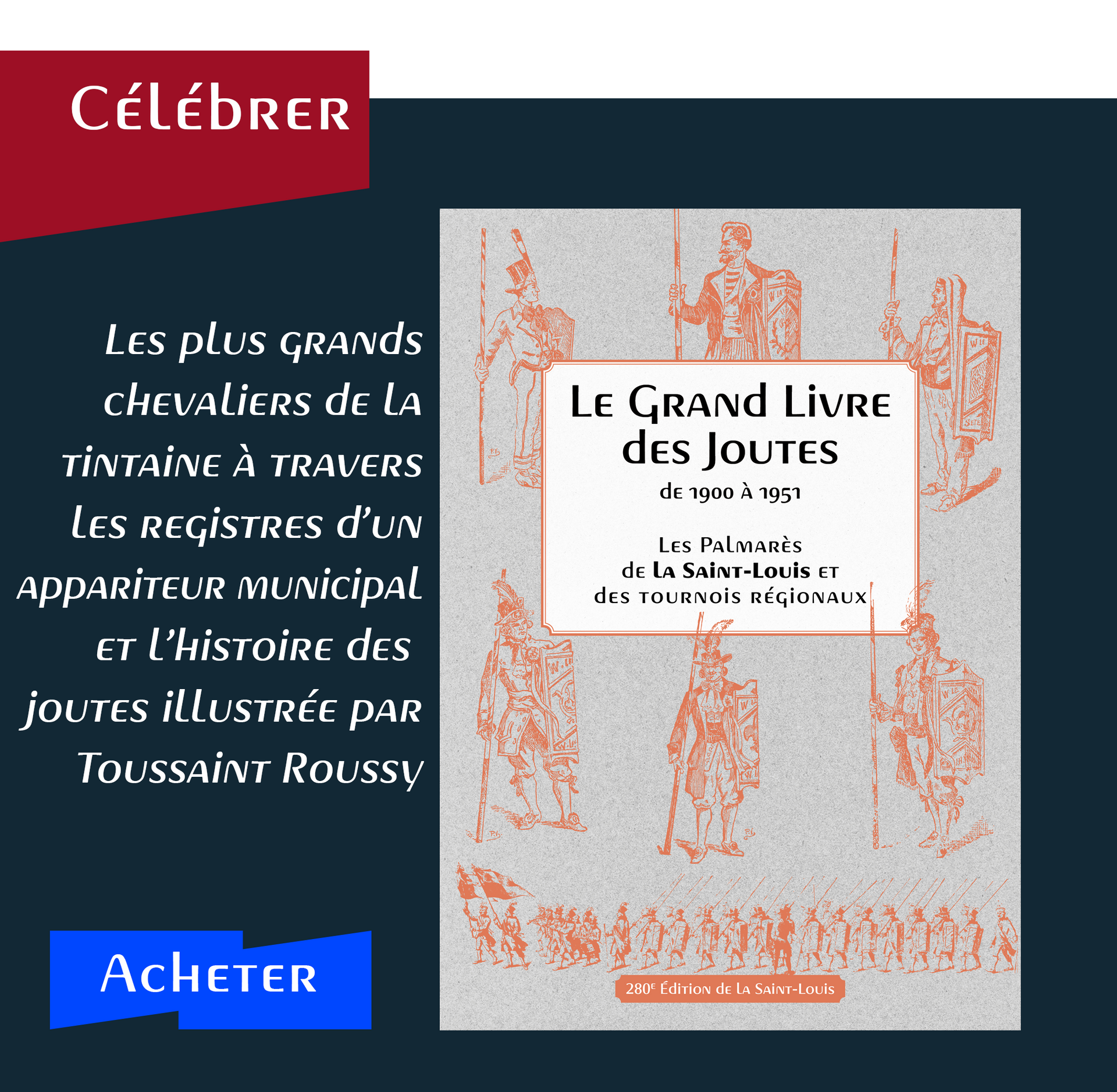 Un portfolio commémoratif édité avec l’appui de la SEHSSER (Société d’études historiques et scientifiques de Sète et sa région) à partir des registres de Clémenceau Terme, appariteur à la mairie remis au père de l’écrivain Jean-Louis Cianni. Un livret et 18 feuillets retracent l’histoire des joutes de la Saint-Louis et des tournois régionaux.