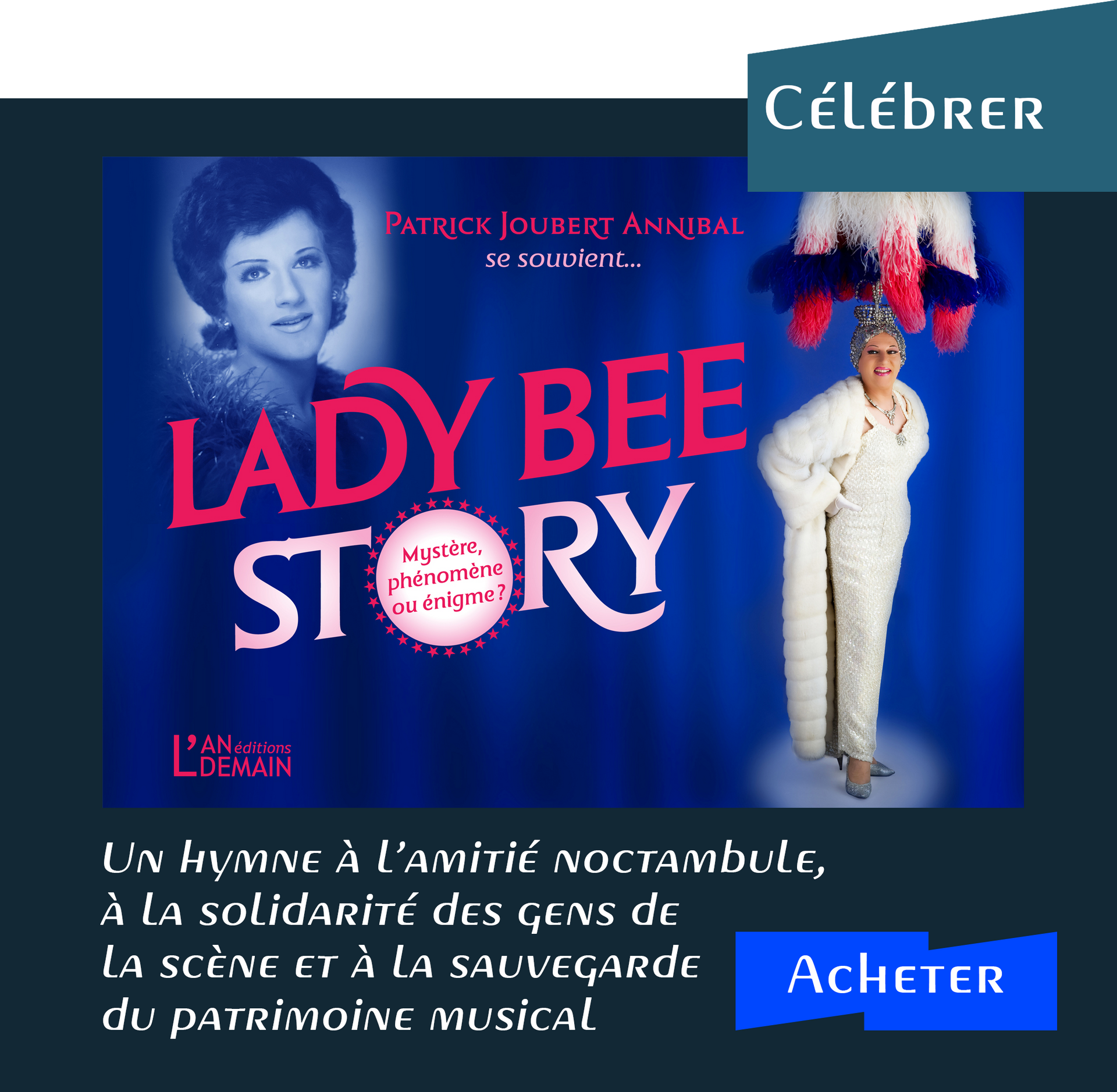 S’il a dès son plus jeune âge travesti sa silhouette et son savoir-plaire — sans aucun recours au scalpel ou injections, tient-il à préciser — dans ces pages illustrées de ses propres archives, Lady Bee jette le masque et se dévoile. Un effeuillage approchant celui d’une hôtesse dans un cabaret pince-fesse, la tristesse en moins, quand il poussait la chansonnette pour une clientèle de tout âge et de tout bord. L’auteur revisite les plateaux d’artistes qu’il montait prestement, un train de nuit d’enfer.