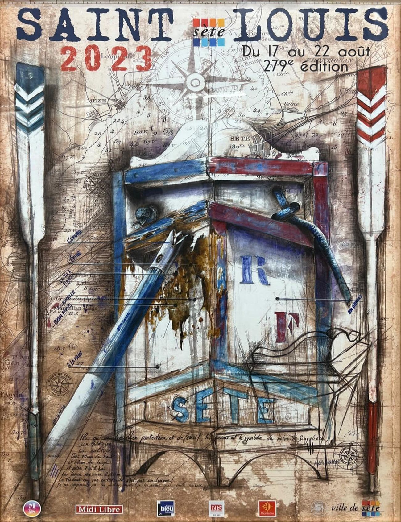Dévoilée le 21 juillet, l’affiche officielle de la Saint-Louis 2023 a été créée par l’artiste sétoise Vivi Navarro, Peintre Officiel de la Marine.