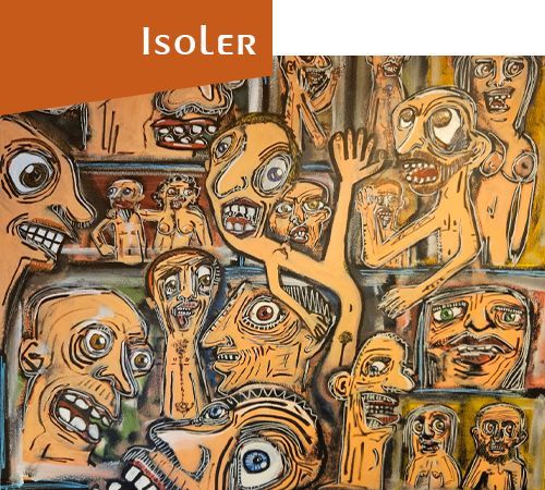 « dans une quête interminable de satisfaction personnelle et de sens ». La figuration libre sétoise a vu grandir Vinny. Ses parents sont passés par les beaux-arts de Perpignan. Pour Vinny, ce sera ceux d’Aix-en-Provence et des toiles néo-expressionnistes, dans lesquelles la bande dessinée reste une source d’instigation inépuisable en île singulière. Il cerne et traite ses silhouettes de biffures noires et franches pour mieux évoquer l’isolement d’une civilisation égotiste. Les cases sont là aussi pour cadenasser tout espoir d’évasion. En chimiste fureteur, Vinny dose sa palette de couleurs bien avisées, pour enfoncer le clou ou, parfois, pour un apport d’humanité.