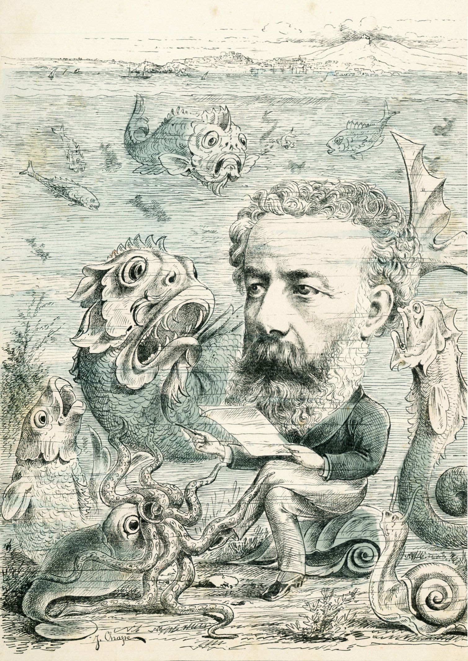 « M. Jules Verne allant recueillir aux bonnes sources des renseignements authentiques sur le monde sous-marin. »