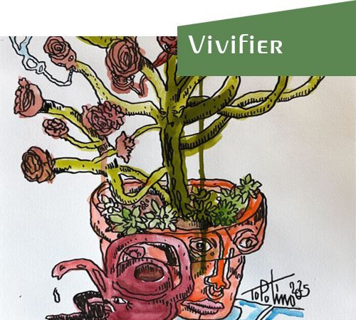 Il ressuscite la nature morte comme un savant fou se demandant quelle est l’essence de la vie, entouré de ses Psychédéliks. Un fort en thème qui a choisi une fois pour toute d’illustrer son quotidien, Topolino, né Marc Combas, se définit sans ambages ni contours comme dessinateur. Et c’est fiévreusement qu’il remplit ses carnets de solides lignes claires au feutre noir vivifiées de couleurs aquarellées.