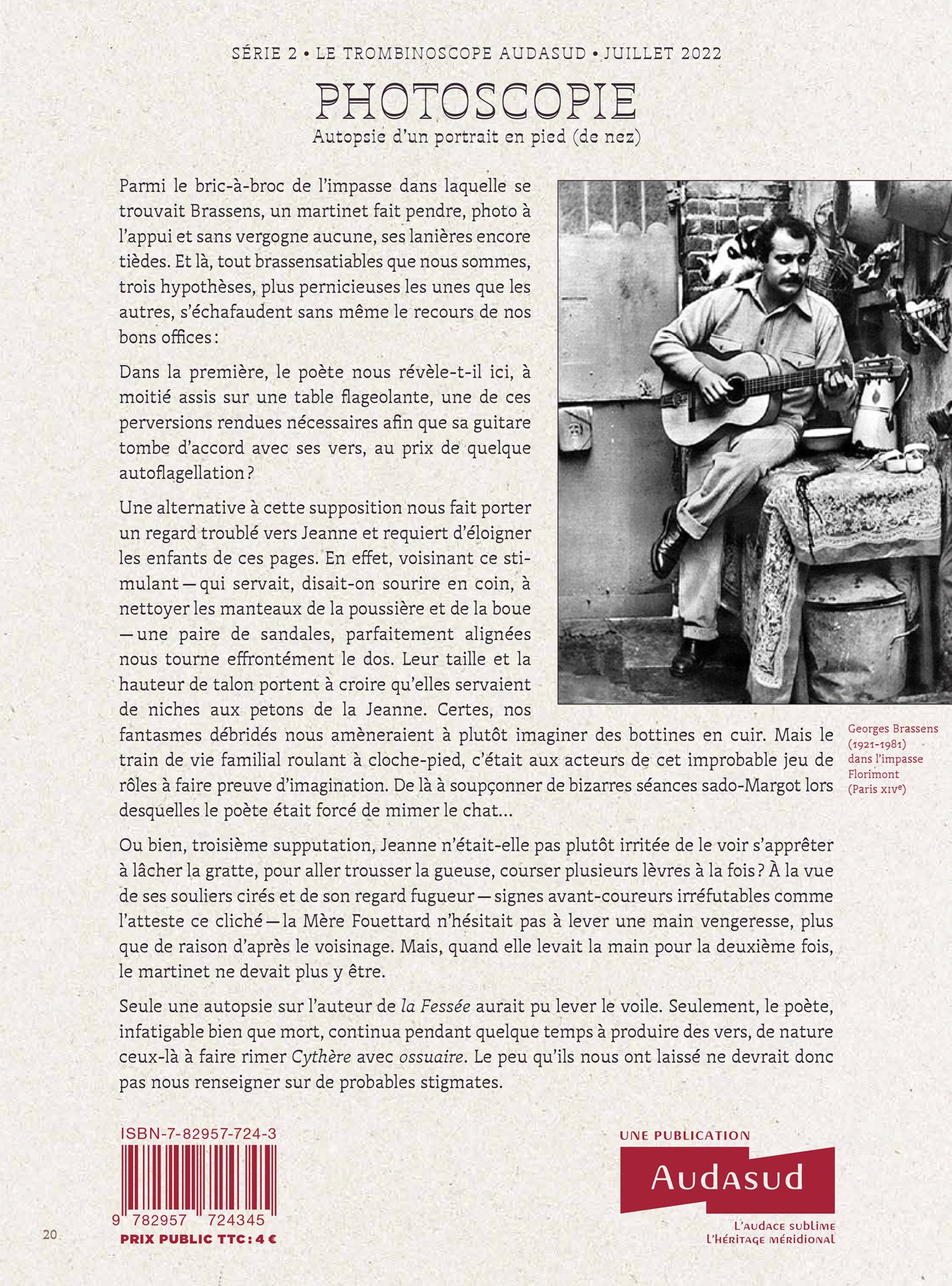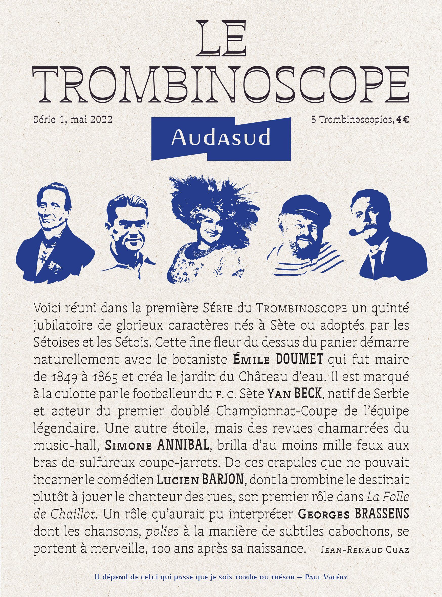 We dare not say here that the need was sorely felt for a bimonthly notebook which would give a year 30 portraits of real or stamped Sétois. This appetite, in spite of everything, we claim to create it, and that one forgives us this audacity, to satisfy it. Even if it means modulating the filter, if the source were to dry up, for a more largely southern gente.