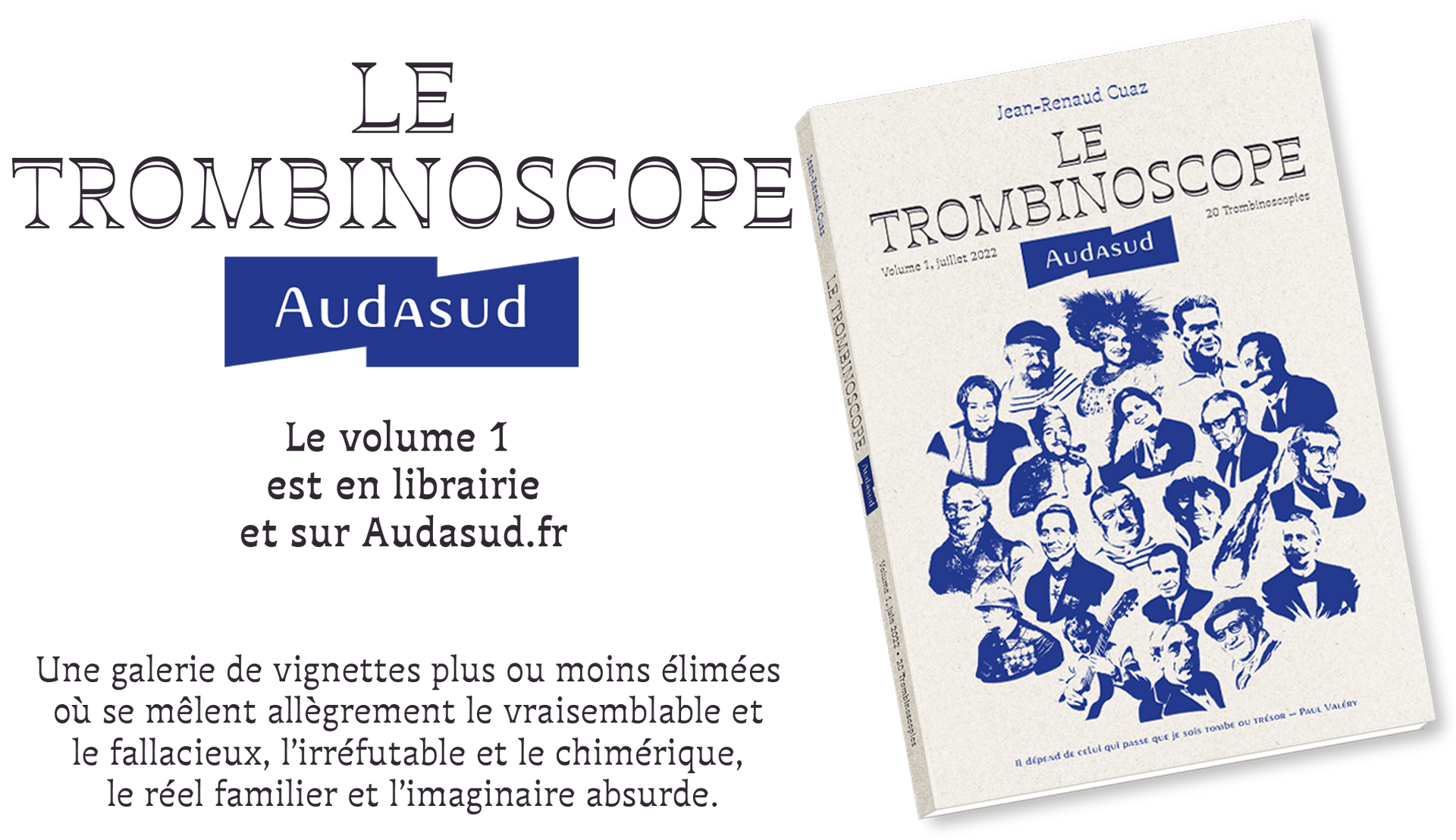 Le Trombinoscope Audasud est une galerie de vignettes plus ou moins élimées où se mêlent allègrement le vraisemblable et le fallacieux, l’irréfutable et le chimérique, le réel familier et l’imaginaire absurde. Ces notices biographiques commencent le plus souvent par le récit parfois fantaisiste de la naissance du personnage ciblé pour ensuite sonner allègrement l’hallali, qui est tout le contraire d’un appel à la prière.