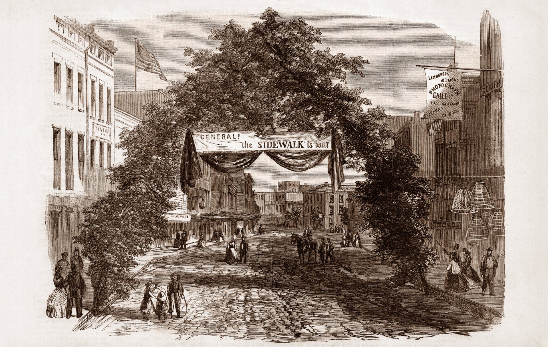 In 1865, Galena welcomed the Lieutenant General into his home with a pride matched only by that of his father. When a suggestion was made to him about the White House, he remarked that he did not aspire to be President, but that he preferred to become Mayor of Galena, and to see the construction of sidewalks there, whose absence had saddened him somewhat. Today, Galena can also be proud of its sidewalks, which the Galena Gazette did not fail to illustrate. The news must not have escaped Ulysses before his arrival, he who was not to read any other daily paper. A special train carrying General Grant left Chicago at 8:30 a.m. with, as a travel ticket, his portrait hanging on the locomotive. The crowd greeted the passage of the train and the station of Marengo had erected a flowery triumphal arch across the track. Should we see this as a nod to history? Another triomphal arch, this one in stone, was to be erected in Paris after the Battle of Marengo in Italy, by a General proud to see his own victories engraved on it.